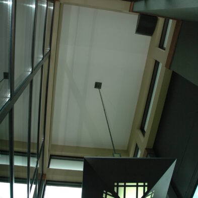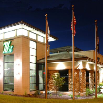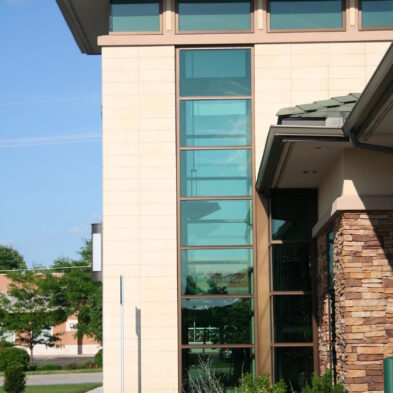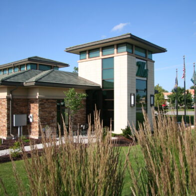 KC Architects designed the new 151st Street & Blackbob Banking Center, located in Olathe, Kansas, another high-profile location. This new corner branch was created with a modern interpretation of “prairie style” architecture staying true & contextual to the adjacent shopping center architecture. Although the exterior building materials were pre-selected to match the Center design standards, KCA created a bold two-story lobby & conference space which translated to an exciting exterior identity. Building materials were specifically located to create a contrasting composition.