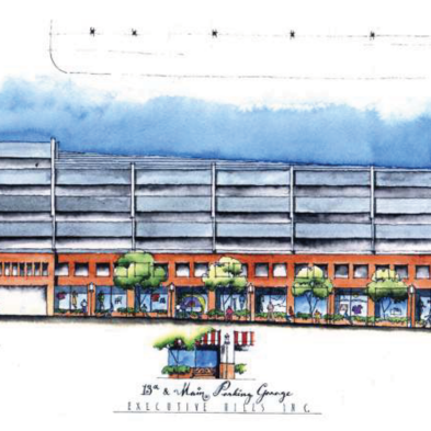 A Study for a new 250-car parking garage for Executive Hills Inc. The 6 story structure consisted of retail spaces at ground level while maintaining vehicle parking above. An elevated pedestrian walkway connected the parking structure to One Kansas City Place.