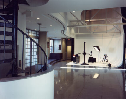KC Architects renovated and remodeled an original Kansas City, Missouri Fire Station No. 3 into a new state-of-the-art Photography Studio. The raw space in the black and white photo was transformed into a sleek studio, offices, kitchen, living quarters, conference room, and roof terrace. The original fire station facade was restored to its original condition and beauty. The studio design won several awards, was published in photography magazines, and received dream studio of the Year honors from those publications.